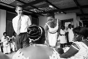 當日晚間,奧巴馬一家抵達加納首都阿克拉后,受到加納總統(tǒng)米爾斯和當?shù)厝说臒崃覛g迎。奧巴馬親手拍了拍歡迎人群的手鼓,此舉使得人群發(fā)出一陣歡呼。一位加納政府官員稱:“總統(tǒng)和加納人民都非常高興奧巴馬第一次正式訪問撒哈拉以南的非洲地區(qū),就來到了加納。”