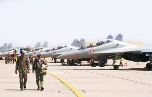 印度空軍以前認為機場和跑道目標明顯、防護脆弱,如果將戰(zhàn)機部署在靠近邊境的一線機場,很容易因機場和跑道被毀而喪失戰(zhàn)斗力。但在“攻勢”戰(zhàn)略的指導下,印度空軍認為戰(zhàn)機前置部署顯然更有利于向對手發(fā)起“先發(fā)制人”的攻擊,這樣機場和跑道防護脆弱的缺點就不用那么令人牽腸掛肚了。