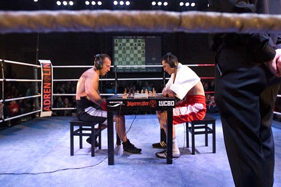 這個比賽結合了腦袋和拳頭的較量。比賽規(guī)則很簡單,先進行4分鐘的國際象棋比賽,然后再進行3分鐘的拳擊比賽,象棋和拳擊交替進行,11個回合之后比賽結束。參賽者是否取勝要看是否能在擂臺上擊倒對手并在棋盤上將死對手。主辦者希望通過這個比賽證明,戰(zhàn)士可以成為智者,智者也可以是戰(zhàn)士。