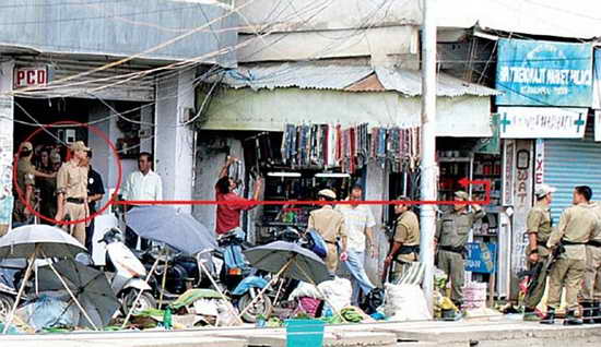印度警方聲稱,7月23日在印度東北部比鄰緬甸的曼尼普爾邦一個市場內(nèi)的一次追捕行動中,一名名叫桑吉特的27歲的男子朝警察開槍,隨后警方將其擊斃。當?shù)卣J為桑吉特是一分裂組織成員。但是據(jù)一名匿名記者披露的照片顯示,桑吉特看起來似乎沒有攜帶武器,而數(shù)名警察趁其不注意將他圍住。警察對桑吉特進行了搜身,而后挾持其到了一家藥店。在藥店門口一名警察掏出手槍將其擊斃。