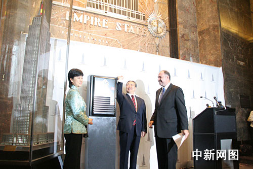 中國(guó)駐紐約總領(lǐng)事彭克玉主持了當(dāng)天的亮燈儀式,并親手拉下點(diǎn)燈電閘。彭克玉說(shuō),為中國(guó)國(guó)慶亮燈表現(xiàn)了美國(guó)人民對(duì)中國(guó)人民的友好情誼,“中美兩國(guó)在人文方面的交流越來(lái)越多,不僅是官方,美國(guó)朋友們?cè)絹?lái)越對(duì)中國(guó)發(fā)展有興趣,感到高興”。
