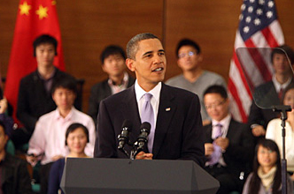 中新社紐約十一月十六日電 美國總統(tǒng)奧巴馬十六日與上海的青年大學生進行了一場約一個小時的對話,美國的多家華文報紙對此都進行了大篇幅的重點報道。