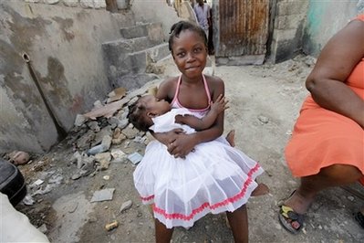 在太子港一所孤兒院,一百二十五位小朋友中有五十人不幸喪生。另一所孤兒院現(xiàn)在成了臨時(shí)庇護(hù)中心,二十個(gè)孩子雖然有地方暫時(shí)棲身,但是物資極度缺乏,F(xiàn)在海地至少二十萬名孤兒急需外界援助,在西方國家有許多想要領(lǐng)養(yǎng)的民眾卻是苦苦等候。