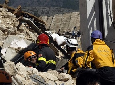 拉奎拉省的平民保護(hù)部門官員估計,當(dāng)?shù)匾延腥种慕ㄖ锏顾。?jù)估計,數(shù)名大學(xué)生仍然被埋在一幢大學(xué)宿舍的瓦礫下,該處仍有一批救援人員和消防員在泛光燈的照明下進(jìn)行搜索。