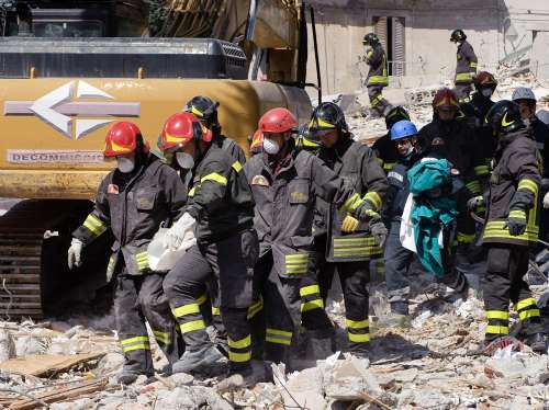 貝盧斯科尼對救援人員表示感謝,因?yàn)榫仍袆用媾R著嚴(yán)重的危險,已經(jīng)被破壞的房屋很容易在余震中坍塌。
