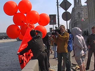 據(jù)俄羅斯新聞網(wǎng)報(bào)道,俄羅斯反對(duì)黨“團(tuán)結(jié)運(yùn)動(dòng)”組織成員4月28日在克里姆林宮前舉行了聲勢(shì)浩大的反政府游行活動(dòng)。期間,3名“團(tuán)結(jié)運(yùn)動(dòng)”的積極分子在克里姆林宮附近的河岸邊懸掛紅色的巨型橫幅,上面印有:“梅德維杰夫,辭去普京總理職務(wù)!弊謽樱瑱M幅兩邊系有紅色的氣球,橫幅下部印有“團(tuán)結(jié)運(yùn)動(dòng)”組織的徽標(biāo)。