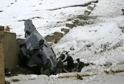 17日的直升機“硬著陸”事件發(fā)生在阿富汗靠近巴基斯坦的邊界地區(qū)。當時,這架飛機上共有7名美軍人員。美軍聲明指出,雖然具體的事故原因仍然在調查之中,但事 發(fā)前這架直升機顯然曾遭到地面輕型武器的射擊。附近村民對記者介紹說,他們看見這架飛機被什么東西“擊中”,然后很快墜地,并冒出滾滾濃煙。
