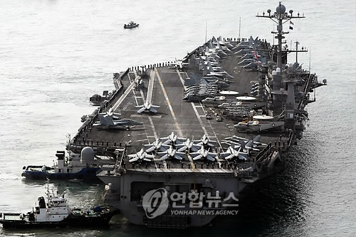 中新網(wǎng)3月11日電 據(jù)韓聯(lián)社報道,將參加韓美“關(guān)鍵決斷”聯(lián)合軍演的美國第3艦隊(duì)核動力航母“約翰·斯坦尼斯”號(9.6萬噸),11日上午抵達(dá)了釜山海軍作戰(zhàn)司令部基地。