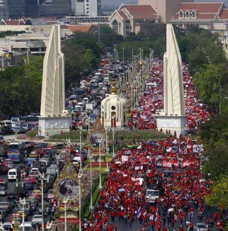 這是阿披實上臺以來反獨聯(lián)在曼谷舉行的第三次大規(guī)模反政府集會示威活動。去年十二月二十九日和三十日,反獨聯(lián)的支持者封鎖泰國國會大院,迫使阿披實臨時使用外交部代替國會大廈發(fā)表施政綱領(lǐng)。今年一月三十一日,反獨聯(lián)在王家田廣場和總理府前舉行大規(guī)模集會,要求阿披實解散國會下議院、加快對去年占領(lǐng)總理府和曼谷兩個機(jī)場的人民民主聯(lián)盟(民盟)領(lǐng)導(dǎo)人的起訴進(jìn)程、解除支持民盟的外長喀實的職務(wù)。
