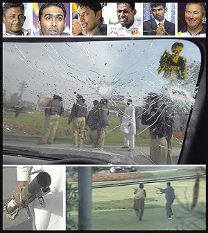 事發(fā)當時,斯里蘭卡板球隊隊員正在前往位于巴基斯坦東部城市拉合爾的一座體育館的路上,突然車隊遭到一伙持槍分子的襲擊。從電視畫面上可以看到,背著雙肩包的持槍歹徒向車隊開火,有幾輛汽車被毀,地面上還有一枚沒有爆炸的手榴彈。
