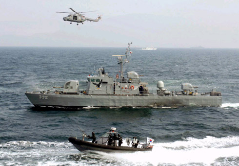 當天,韓國型驅(qū)逐艦“文武大王艦”、一架反潛直升機和兩艘高速短艇和負責船舶搜查任務的海軍特種士兵參與了演習。