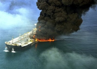 據(jù)悉,這艘名為“克什米爾”號(hào)油輪載有22個(gè)液化氣儲(chǔ)罐,碰撞事故造成其中一個(gè)儲(chǔ)氣罐著火。集裝箱貨輪在事故中也發(fā)生小規(guī);馂(zāi),但火勢(shì)很快被船上人員撲滅。