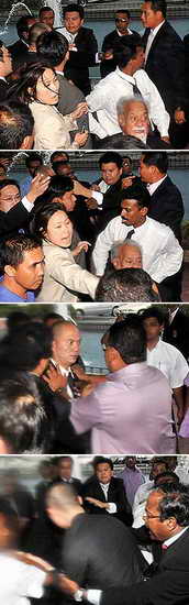 因身體殘疾而坐輪椅的卡帕爾稱,20名巫統(tǒng)青年團(tuán)成員在議會(huì)大樓的一個(gè)入口處對(duì)他進(jìn)行圍堵,要求他作出道歉。他對(duì)法新社稱:“這是一個(gè)危險(xiǎn)的先例,我們不能讓這樣的事情發(fā)生,我們作為議員,有責(zé)任在議會(huì)履行職責(zé)!绷硪幻裰餍袆(dòng)黨議員林立迎稱,他在幫助卡帕爾逃過推搡時(shí)遭到襲擊。