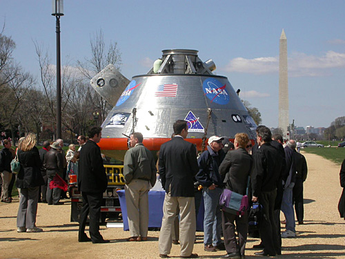 據(jù)報道,國家航空和航天局30日在美國華盛頓市中心的國家大草坪上展出了實物大小的獵戶座飛船模型。