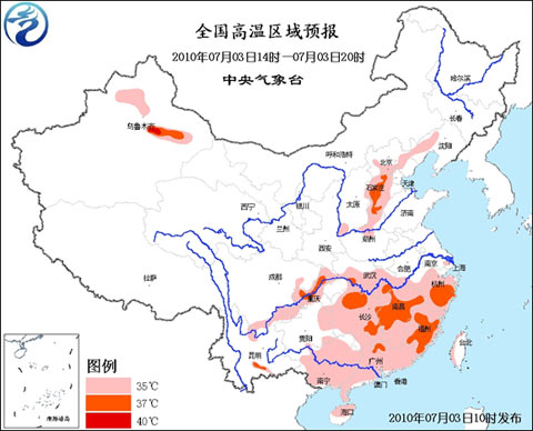 中新網(wǎng)7月3日電 中央氣象臺3日10時發(fā)布高溫黃色預警:預計,今日下午,江淮西南部、江漢南部、江南大部、華南大部、貴州東部、重慶大部、四川東部和南部、云南東北部等地有35~37℃、局地38~40℃的高溫天氣。另外,遼寧西部、北京中南部、河北大部、山西西南部、河南北部等地的部分地區(qū)也將有35~37℃、局地38~39℃的高溫天氣。