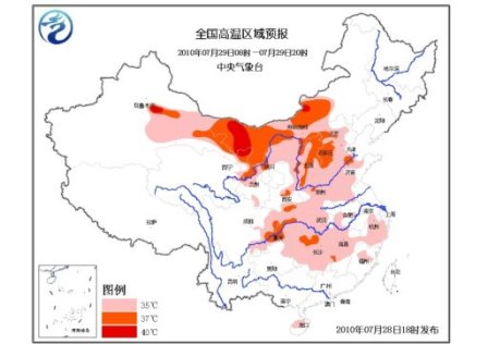 預計,明天白天,京津地區(qū)、河北大部、山西、陜西關中地區(qū)和東部、寧夏中北部、河南大部、山東中西部、安徽北部、湖北、四川盆地東部、重慶、貴州東北部、湖南大部、江西中北部、浙江大部、福建北部、海南北部等地有35℃以上的高溫天氣,局地最高氣溫可達37~38℃;內(nèi)蒙古中西部、甘肅大部、新疆吐魯番盆地及南疆盆地東部等地將有35~37℃的高溫天氣,局地最高氣溫可達40℃以上。