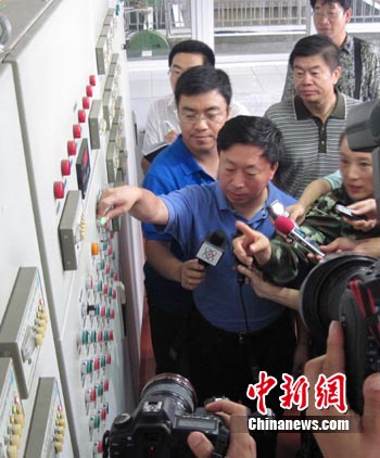 中新網(wǎng)通化8月4日電 (記者 吳兆飛 崔顏鋒)8月4日9時(shí)15分,吉林省通化市市長(zhǎng)田玉林在當(dāng)?shù)貎羲畯S啟動(dòng)了供水按鈕,這意味著經(jīng)過64個(gè)小時(shí)的緊張搶修,通化市終于恢復(fù)供水,預(yù)計(jì)在數(shù)小時(shí)后,33萬通化市民在家中將可以用上自來水。