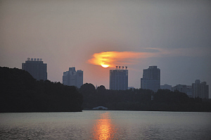 昨天清晨,早起鍛煉的市民感覺到,天氣比前段時期要涼快不少,周六南京吹了一天的東南風,溫度也降了不少,昨天早上5點到6點,南京只有25℃左右。而東風將海上的新鮮空氣源源不斷地送來,南京的天空也如海水般湛藍。天空是萬里無云,一碧如洗,如水晶般剔透。昨天南京的溫度沒有達到高溫,但是由于天空狀況好,能見度高達24公里,所以紫外線照射非常強烈,很多人在戶外活動時,還是會比較熱。
