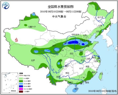 8月10日至13日,北方地區(qū)將出現(xiàn)一次強(qiáng)降雨過(guò)程。降雨主要集中在西北、華北以及黃淮的部分地區(qū),黃河中游也將出現(xiàn)大雨或暴雨,局地大暴雨。甘肅舟曲11日起,也將出現(xiàn)較強(qiáng)降雨,對(duì)搶險(xiǎn)救援不利。