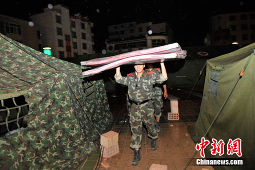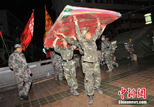 中新網(wǎng)舟曲8月11日電(記者 唐偉杰)在數(shù)十分鐘的密集電閃雷鳴之后,舟曲災(zāi)區(qū)開始降雨,目前雨勢較小。