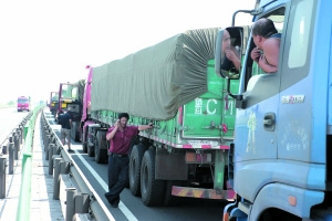 一位從內(nèi)蒙古運(yùn)送焦炭的司機(jī)表示,因?yàn)橹栏咚俣萝,所以才選擇走110國道。不過由于選擇改道的車輛很多,110國道通行能力有限,“這條道也開不起來了!