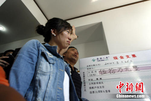 26日10時30分左右,泰康人壽總裁劉經綸趕到遇難者家屬居住的光明商務酒店,親自將寫有50萬元的支票交到遇難者姚鐵強的家屬手中。這是伊春空難發(fā)生以來,遇難家屬獲得的第一筆大額賠款。