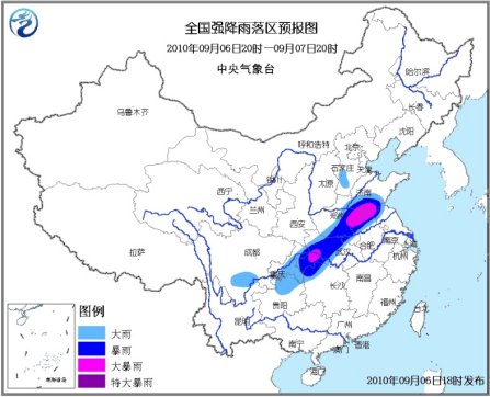 9月6日20時(shí)到7日20時(shí),山東中南部、安徽北部、江蘇北部、河南東部和南部、湖北中西部、重慶中東部、貴州北部、湖南西北部以及川西高原東南部、河北西南部等地有大雨或暴雨,其中,湖北西南部、河南中部偏東地區(qū)、山東西南部、安徽北部、江蘇西北部等地局部有大暴雨;上述部分地區(qū)并伴有短時(shí)雷雨大風(fēng)等強(qiáng)對(duì)流天氣。