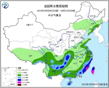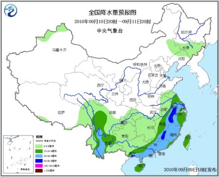 9日20時(shí)至10日20時(shí),青海東南部、西藏大部、陜西東南部、內(nèi)蒙古東南部、吉林、遼寧、黃淮、江淮、江漢、江南、華南、西南地區(qū)大部等地有小到中雨或陣雨,其中,川西高原南部、重慶東部、湖北西南部、貴州中北部和西部、云南東北部、浙江東部沿海和南部、福建、廣東中東部和西南部、廣西南部、海南、臺(tái)灣等地有大雨或暴雨,福建東南部、臺(tái)灣南部等地局部有大暴雨;另外,西藏東南部、江蘇東北部等地的部分地區(qū)有大雨;上述部分地區(qū)并伴有短時(shí)雷雨大風(fēng)等強(qiáng)對(duì)流天氣。新疆西北部、內(nèi)蒙古中西部和東南部有4~5級(jí)風(fēng);廣東沿海、福建沿海、浙江南部沿海等地有6~8級(jí)風(fēng)。受“莫蘭蒂”的影響,臺(tái)灣海峽、臺(tái)灣以東洋面和以南海域、南海北部有7~8級(jí)大風(fēng),“莫蘭蒂”中心經(jīng)過(guò)的附近海域風(fēng)力有9~11級(jí),陣風(fēng)可達(dá)12~13級(jí);東海南部有5~7級(jí)東南風(fēng)。