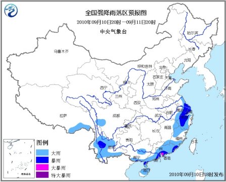 中新網(wǎng)9月10日電 據(jù)中央氣象臺網(wǎng)站消息,中央氣象臺9月10日18時發(fā)布暴雨藍色預警:9月10日20時到11日20時,江蘇東部和南部、上海、安徽東南部、浙江大部、江西東北部和東南部、福建西北部和南部、廣東大部、廣西南部、海南中北部、云南大部、川西高原南部、西藏東南部等地有大雨或暴雨,局地有大暴雨;上述地區(qū)局部并伴有短時雷雨大風等強對流天氣。
