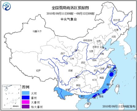 中新網(wǎng)9月11日電 據(jù)中央氣象臺網(wǎng)站消息,中央氣象臺9月11日06時繼續(xù)發(fā)布暴雨藍色預(yù)警:9月11日08時到12日08時,江蘇東南部、上海、浙江大部、江西東北部和東南部、福建大部、廣東中南部和東部、廣西南部、云南南部等地有大雨或暴雨;上述地區(qū)局部并伴有短時雷雨大風等強對流天氣。