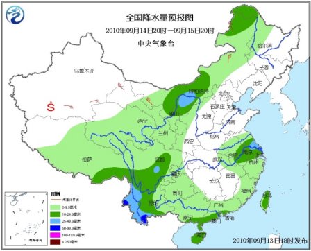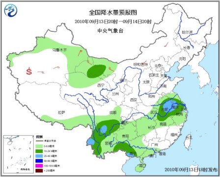 13日20時至14日20時,新疆東部和沿天山一帶、西藏東南部、青海北部、甘肅西部、內(nèi)蒙古西部、黃淮南部、江淮、江漢東南部、江南中北部、華南西部和南部、川西高原中南部、四川盆地西部和南部、重慶南部、貴州、云南等地有小到中雨或陣雨,其中,安徽中南部、江蘇西南部、川西高原南部、云南西部、廣西西南部等地的部分地區(qū)有大雨;上述地區(qū)局部并伴有短時雷雨大風(fēng)或冰雹等強(qiáng)對流天氣。新疆大部、甘肅西部、內(nèi)蒙古中西部等地有4~6級風(fēng),新疆山口地區(qū)風(fēng)力可達(dá)7~9級,南疆盆地的部分地區(qū)有揚沙或浮塵天氣。渤海、黃海大部有4~5級西南風(fēng);東海大部、臺灣以東洋面、南海中南部有4~6級東南風(fēng);臺灣以南海域、南海北部有4~6級偏東風(fēng)。