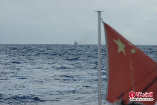 (環(huán)球時報赴釣魚島特派記者程剛2010年10月3日、4日在中國釣魚島海域發(fā)回的報道)這一次的中國漁政釣魚島巡航編隊,漁政201船是指揮船。時值國慶節(jié)日期間,帶隊的東海區(qū)漁政局張秋華副局長一直想到203船上去“看望弟兄們”。10月3日早上,巡航水域的海面難得的平靜,8時許,201船船長施冬下令:“放小艇!