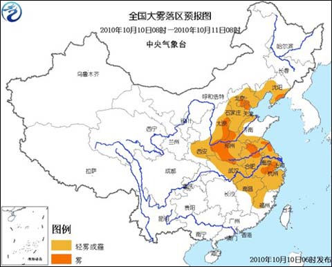 今天上午,遼寧中南部、華北東部和南部、黃淮西部和南部、江淮、江漢北部和東部、江南東部、陜西中部等地有輕霧或霾,其中,遼寧東南部、京津大部、山西東南部、河南西部、安徽北部和東南部、江蘇東北部和南部、浙江北部等地的部分地區(qū)有能見度不足1000米的霧,局地能見度不足500米。