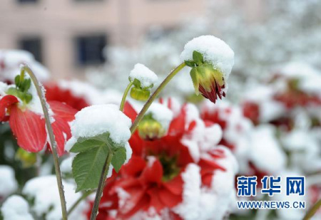 16日凌晨3時(shí)左右,黑龍江省大慶市及其周邊市縣開(kāi)始降雪,至5時(shí)左右,大雪飛揚(yáng),車上、房頂和部分路段已積起了一層雪。由于近期大慶市氣溫并不低,樹(shù)葉都是綠色,突然降下的白雪蓋在綠樹(shù)上,顯得格外漂亮。