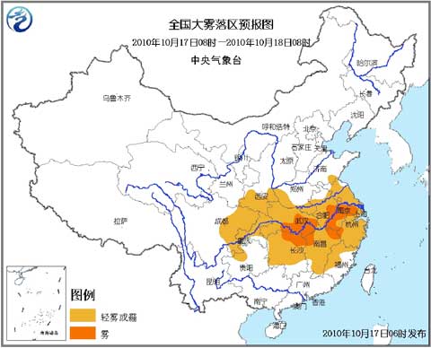 中新網(wǎng)10月17日電 據(jù)中央氣象臺消息,中央氣象臺10月17日06時繼續(xù)發(fā)布大霧藍(lán)色預(yù)警:預(yù)計今天(17日)早晨到上午,黃淮南部、陜西南部、江淮、江漢、四川盆地大部、重慶大部、江南大部、福建中西部等地將有輕霧或霾。