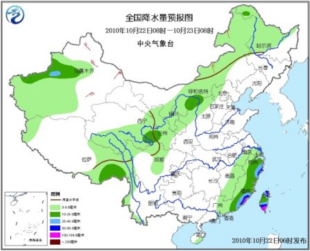 22日08時(shí)至23日08時(shí),新疆天山地區(qū)及南疆、西藏東部、青海中東部、川西高原北部、內(nèi)蒙古中東部、黑龍江大部等地有小雨(雪)或雨夾雪,新疆天山部分地區(qū)有中到大雨轉(zhuǎn)中到大雪,局地有暴雪;內(nèi)蒙古東北部、黑龍江西北部的部分地區(qū)有大雪或暴雪;甘肅中東部、寧夏、陜西北部、華北西北部、四川盆地西部、云南西部、蘇皖南部、浙江、福建、江西、廣東中東部、海南南部、臺(tái)灣等地有小到中雨或陣雨,其中,浙江東南部沿海、福建東南部、臺(tái)灣等地有大到暴雨,局地有大暴雨。新疆大部、甘肅西部、內(nèi)蒙古西部和東北部、東北北部等地有4~6級(jí)風(fēng),新疆山口地區(qū)有8~10級(jí)風(fēng),新疆南疆盆地的部分地區(qū)有沙塵或沙塵暴天氣。浙江東南部沿海、福建沿海、廣東東部沿海地區(qū)有5~7級(jí)風(fēng)。受冷空氣和“鲇魚(yú)”的共同影響,南海東北部海域的風(fēng)力將有10~12級(jí)、陣風(fēng)可達(dá)13~14級(jí);“鲇魚(yú)”中心經(jīng)過(guò)的附近海域的風(fēng)力將有13~15級(jí)、陣風(fēng)可達(dá)16~17級(jí);臺(tái)灣海峽將有9~10級(jí)大風(fēng),陣風(fēng)可達(dá)11~13級(jí);東海南部海域?qū)⒂?~9級(jí)東北風(fēng),陣風(fēng)可達(dá)10~12級(jí);南海西北部和中部海域?qū)⒂?~7級(jí)西北風(fēng),陣風(fēng)可達(dá)8~9級(jí);臺(tái)灣以南海域和以東洋面將有6~8級(jí)偏南風(fēng),陣風(fēng)可達(dá)9級(jí);東海北部海域?qū)⒂?~7級(jí)東北風(fēng)。