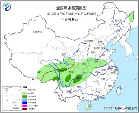 中新網(wǎng)11月2日電 中央氣象臺預(yù)報,未來三天,青藏高原東部多雨雪天氣,今天在西藏東北部、青海東南部、川西高原北部等地的部分地區(qū)有中到大雪,局地暴雪。另外,新疆北部、西北地區(qū)東南部、黑龍江東北部、山西南部、黃淮西部、江漢西部、西南地區(qū)大部等地還會出現(xiàn)小到中雨(雪)或雨夾雪。