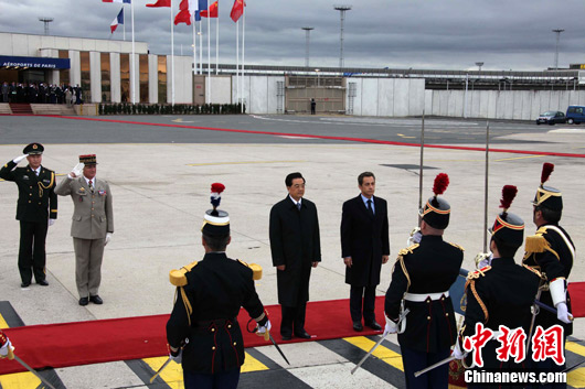 在短短兩天訪問期間,胡錦濤將與薩科齊至少5次會面,而薩科齊可謂“全程陪同”。特別是,薩科齊將在結(jié)束外地視察返回巴黎后,直接在機(jī)場迎接胡錦濤的到來并送至下榻飯店。胡錦濤將與薩科齊同乘一車,接受法國共和國衛(wèi)隊百余名盛裝騎兵的歡迎。這種高規(guī)格安排,在薩科齊就任總統(tǒng)三年來尚屬首次。