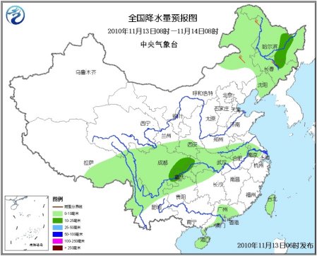 中新網(wǎng)11月13日電 今天,東北地區(qū)大雪紛飛的天氣將逐漸進入尾聲。中央氣象臺預(yù)計,隨著冷空氣的南下,未來三天,青藏高原東部及其以東地區(qū)將迎來一輪陰雨天氣過程。中東部地區(qū)大范圍的降溫還會繼續(xù),部分地區(qū)的降溫幅度可達8-10℃。