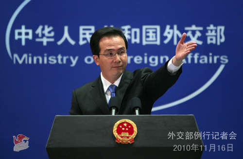 2010年11月16日,外交部發(fā)言人洪磊主持例行記者會(huì),就巴以和談、幾內(nèi)亞大選、中俄印外長(zhǎng)會(huì)晤等問(wèn)題回答了記者提問(wèn)。答問(wèn)全文如下: