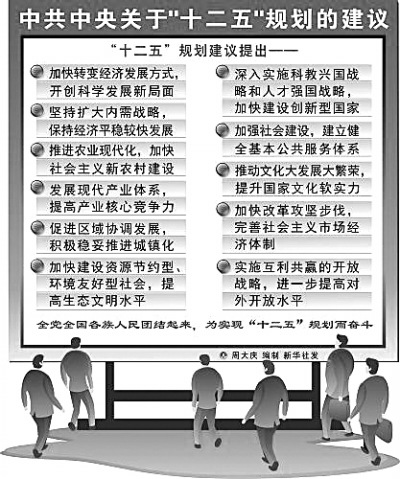 黨的十七屆五中全會通過的《中共中央關(guān)于國民經(jīng)濟和社會發(fā)展第十二個五年規(guī)劃的建議》,為我國“十二五”時期奪取全面建設(shè)小康社會新勝利、開創(chuàng)中國特色社會主義事業(yè)新局面,提供了綱領(lǐng)性建議和指導性方針!笆濉睍r期,是在科學發(fā)展的道路上繼續(xù)前行,開創(chuàng)科學發(fā)展新局面的重要時期。