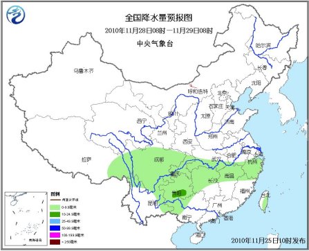 12月1日08時(shí)至2日08時(shí),內(nèi)蒙古東北部有小到中雪,貴州、四川南部等地有小雨。