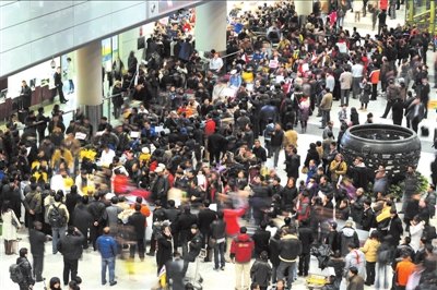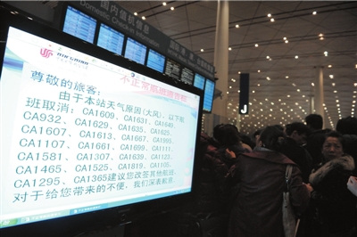 昨天下午,大量乘客滯留在候機廳內(nèi),延誤通知不斷重播,多數(shù)乘客表示不滿。乘客孫女士氣憤地說,他們一行20人從北京飛往上海,原定上午9點半起飛,已經(jīng)在此處等候了8個小時,“剛一問,對方說可能要明天起飛”,此話引起眾人不滿,多人要求機場方解決食宿問題,但對方始終稱“需要協(xié)調(diào)”。