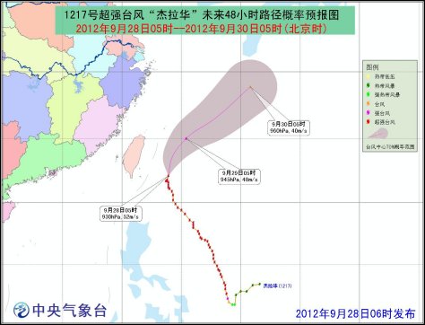 另外,今年第17號超強(qiáng)臺風(fēng)“杰拉華”的中心28日05時(shí)位于中國臺灣省花蓮市東南方大約310公里的西北太平洋洋面上,中心附近最大風(fēng)力16級(52米/秒),中心最低氣壓為930百帕。預(yù)計(jì),“杰拉華”將以每小時(shí)15公里左右的速度向偏北轉(zhuǎn)東北方向移動,逐漸向日本南部一帶沿?拷瑥(qiáng)度緩慢減弱。