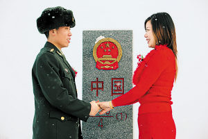 2008年12月30日,瑞雪飄飄。在祖國東極-黑龍江省撫遠縣黑瞎子島,某邊防連排長郭曉明和山東姑娘孫曉麗的婚禮在哨所舉行。