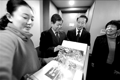 昨天下午5點30分左右,港澳委員陸續(xù)到會報道。市政協(xié)主席陽安江,北京市委常委、統(tǒng)戰(zhàn)部部長牛有成來到港澳委員下榻的酒店,慰問遠(yuǎn)道而來的港澳委員。來到市政協(xié)委員、澳門國際銀行常務(wù)董事葉啟明的房前,看到他只穿一件襯衣,陽安江主席關(guān)切地說:“北京現(xiàn)在是三九天,要注意保暖啊!笔姓䥇f(xié)委員、香港宇一畫院院長劉浩眉拿出她和父親共同完成的反映北京奧運會的畫冊,贈給本次大會。