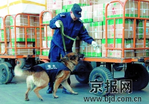 上午9時(shí),4只“犬警官”坐鎮(zhèn)北京西站,在旅客行李房等處忙著緝毒搜爆,還將在廣場、站臺、垃圾箱、行李房、下水道及各陰暗角落搜查可疑物品。