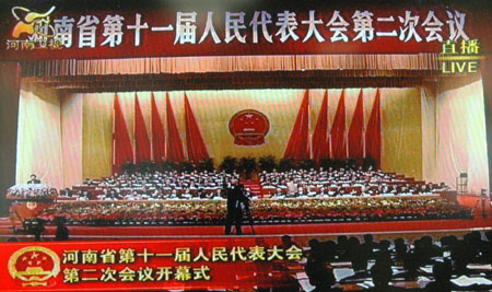 今天上午9時(shí),河南省第十一屆人民代表大會(huì)第二次會(huì)議在河南省人民會(huì)堂隆重開(kāi)幕。徐光春主持會(huì)議,郭庚茂做政府工作報(bào)告。