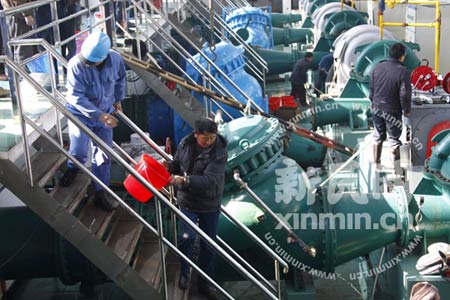 昨晚11點(diǎn),搶修好的3臺(tái)泵房設(shè)備從閔行電機(jī)廠運(yùn)回至松江第二水廠。11點(diǎn)35分,第一臺(tái)設(shè)備安裝調(diào)試完畢;11點(diǎn)40分,開(kāi)始恢復(fù)向受影響的城區(qū)居民供水。到今天早上,松江第二水廠供水能力已恢復(fù)到正常水平。(薛驍翔)