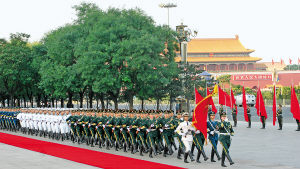 中國(guó)人民解放軍陸?杖妰x仗隊(duì)主要擔(dān)負(fù)迎送外國(guó)元首、政府首腦、軍隊(duì)高級(jí)將領(lǐng)及紀(jì)念、慶典等重大國(guó)事活動(dòng)的儀仗司禮任務(wù)。禮儀是一個(gè)國(guó)家文化的精華,軍人執(zhí)行的國(guó)禮、軍禮更是一種精粹。三軍儀仗隊(duì)建隊(duì)以來(lái),先后圓滿完成了外國(guó)首腦訪問(wèn),香港、澳門回歸政權(quán)交接儀式升國(guó)旗,奧運(yùn)會(huì)、殘奧會(huì)開(kāi)閉幕式國(guó)旗升降、頒獎(jiǎng)等3000多次儀仗司禮任務(wù),被中央軍委授予“軍旅標(biāo)兵”榮譽(yù)稱號(hào),贏得了國(guó)內(nèi)外公眾和輿論的廣泛贊譽(yù)。朱民、劉桂利、張力攝影報(bào)道